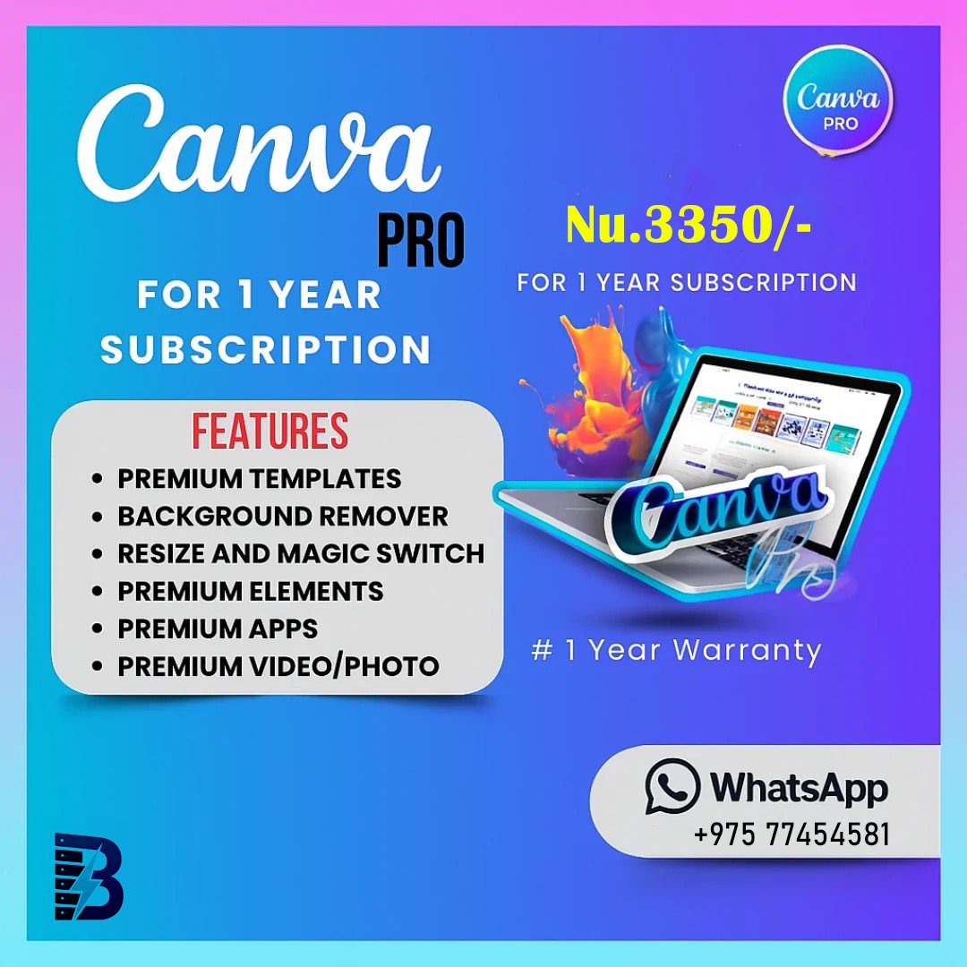 β Subscription Validity: Canva Pro 1-Year Subscription (12 months full access)